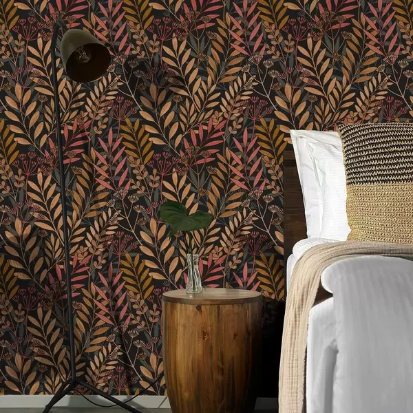 Tapety Ciemna łąka ze stylizowanymi liśćmi i strąkami nasion Nr. a01020