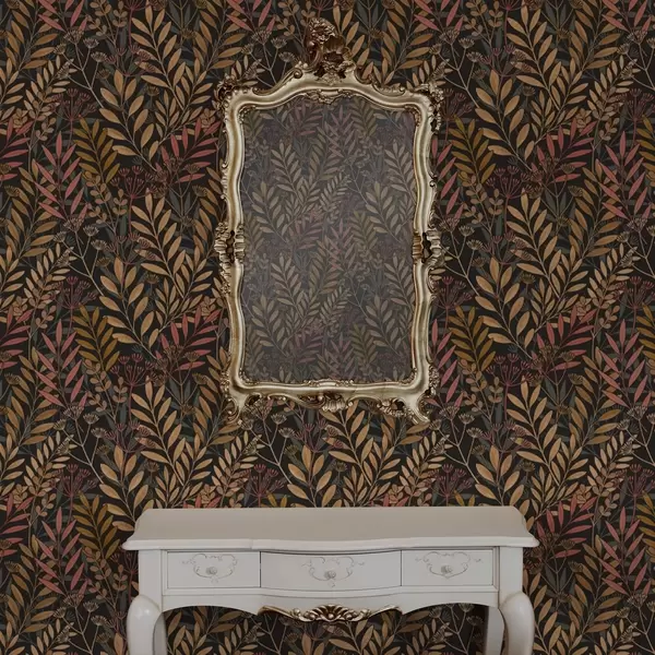 Tapety Ciemna łąka ze stylizowanymi liśćmi i strąkami nasion Nr. a01020