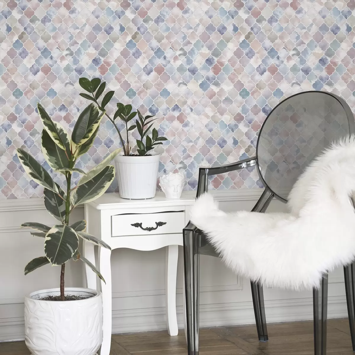 Tapety Jasna mozaika w pastelowych kolorach z delikatnymi marokańskimi wzorami Nr. a01039v1