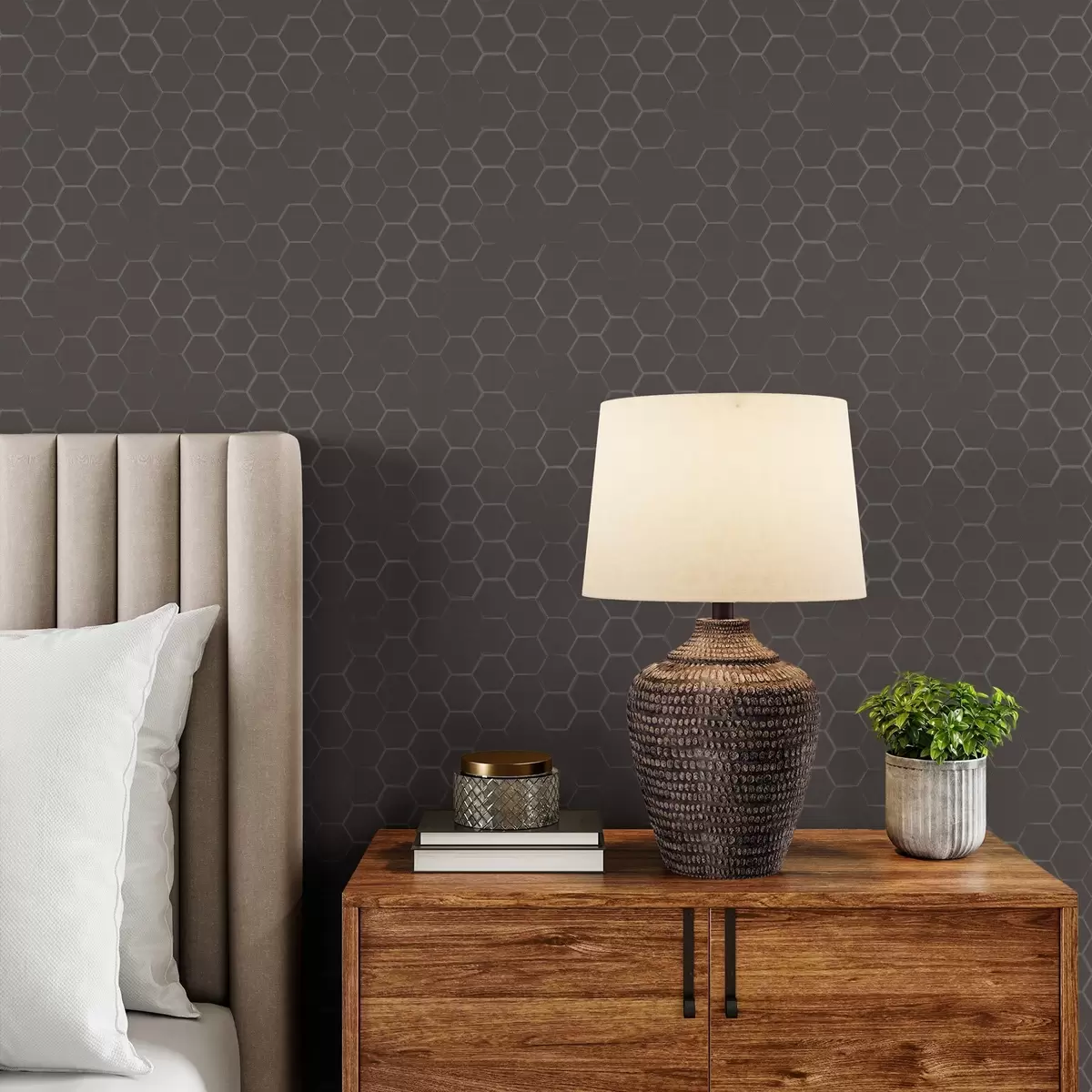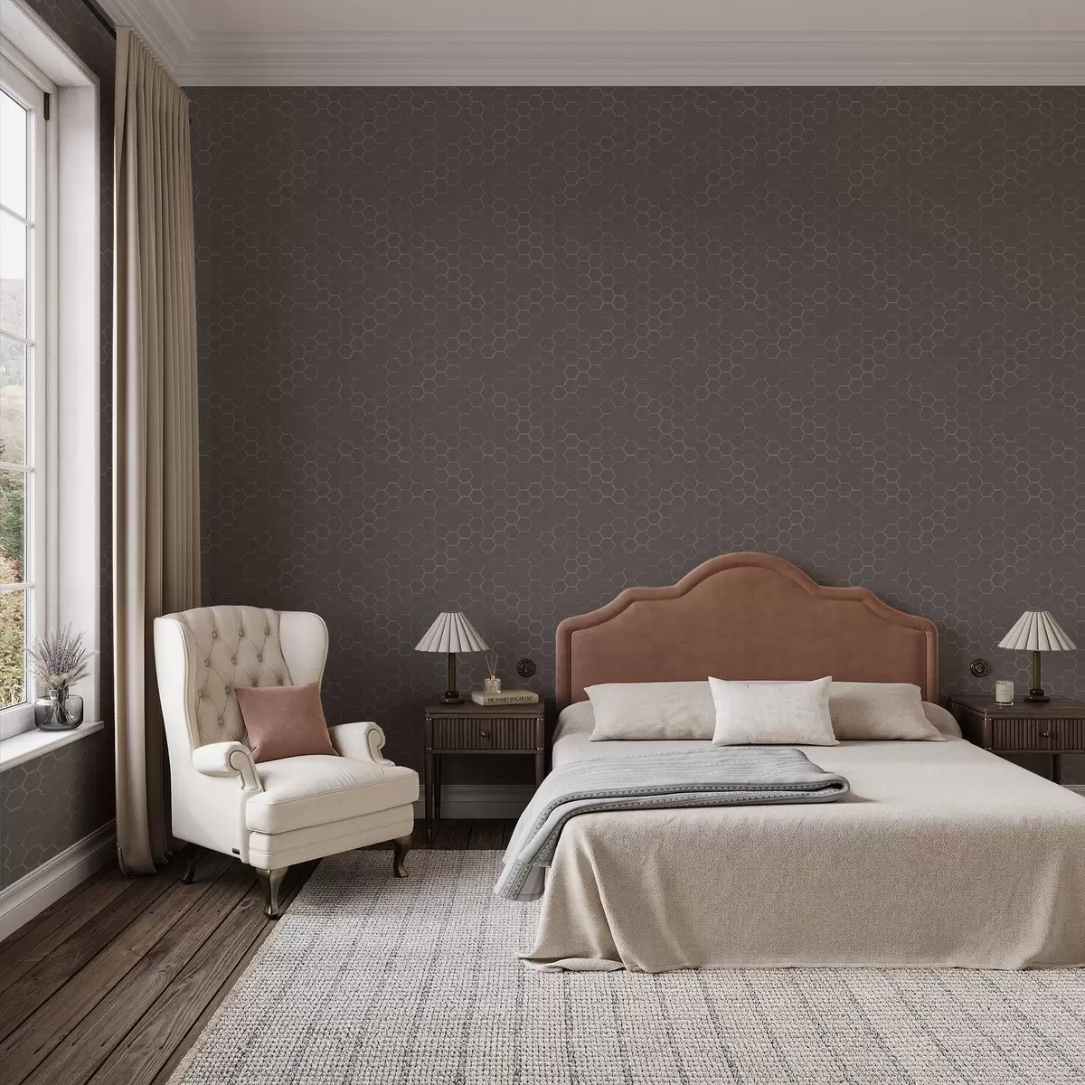 Tapety Gęsty sześciokątny wzór w delikatnych odcieniach szarości Nr. a01060v2