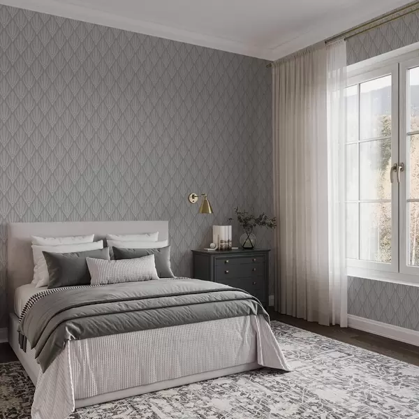 Tapety Szary styl art déco z formami w kształcie wachlarza Nr. a01064