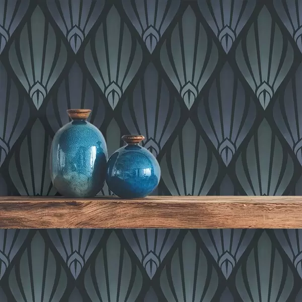 Tapety Fajny niebiesko-szary styl Art Deco z formami w kształcie wachlarza Nr. a01064v3