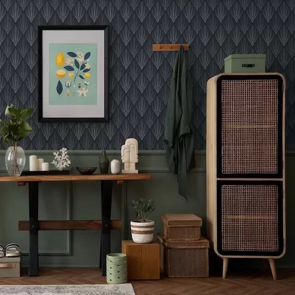 Tapety Fajny niebiesko-szary styl Art Deco z formami w kształcie wachlarza Nr. a01064v3