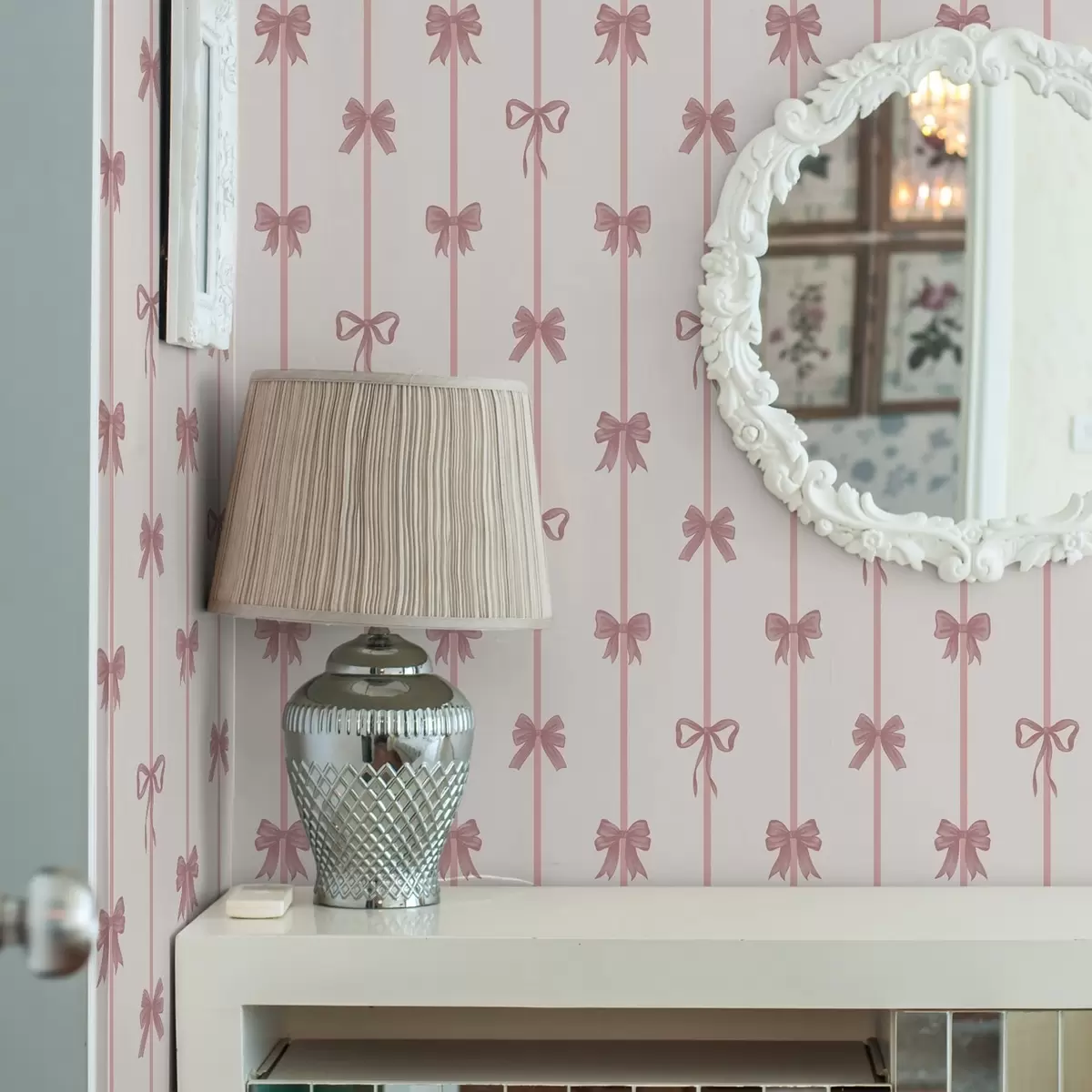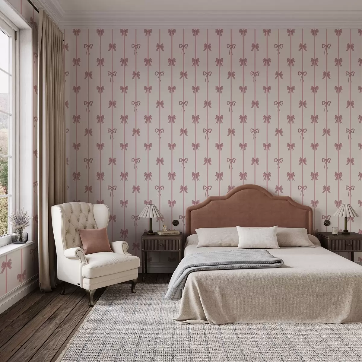 Tapety Różowe kokardki z wstążkami na jasnym tle Nr. a01074