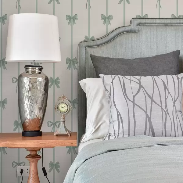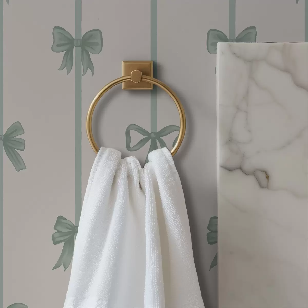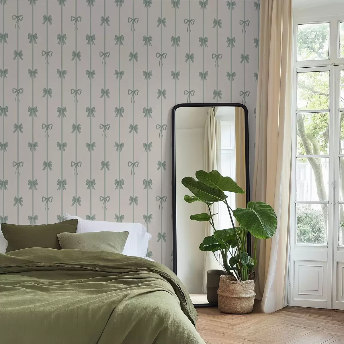 Tapety Zielone kokardki z wstążkami na beżowym tle Nr. a01074v1