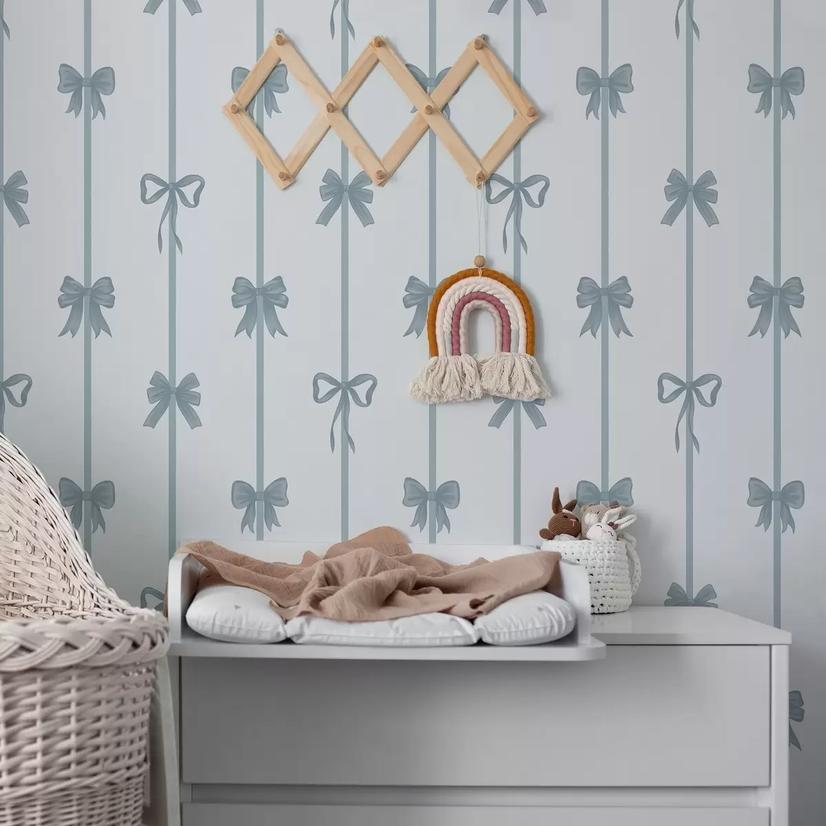 Tapety Niebieskie kokardki z wstążkami na jasnym tle Nr. a01074v2