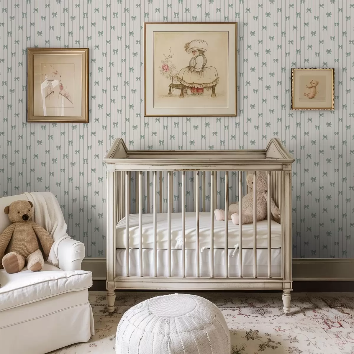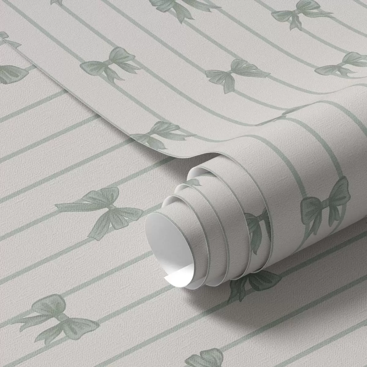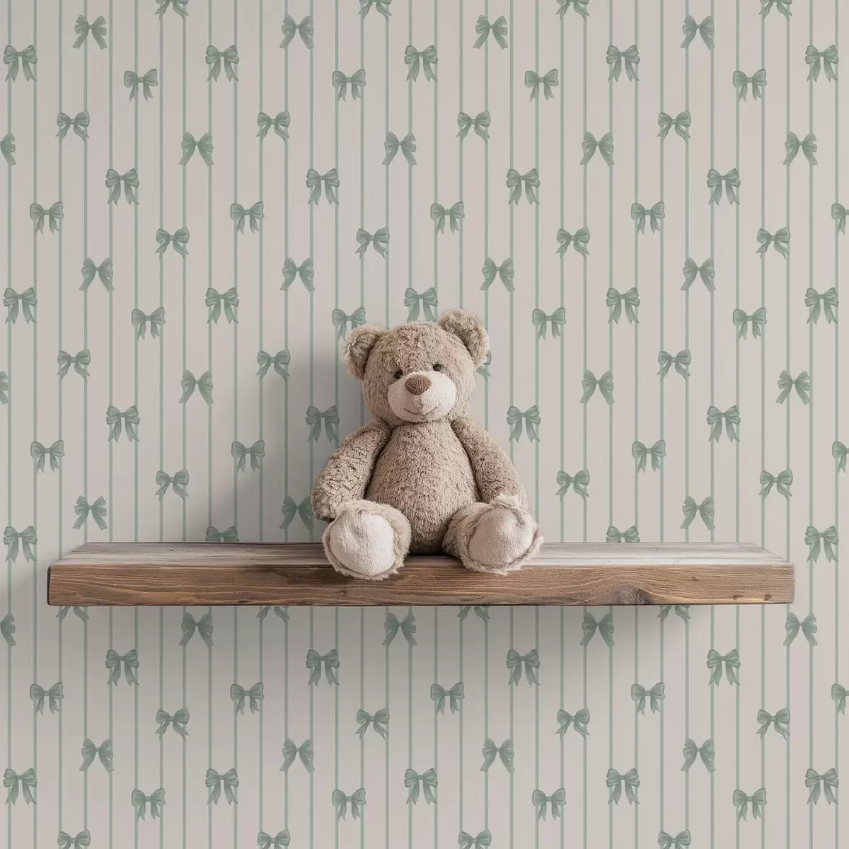 Tapety Małe zielone kokardki w paski na beżowym tle Nr. a01076v2
