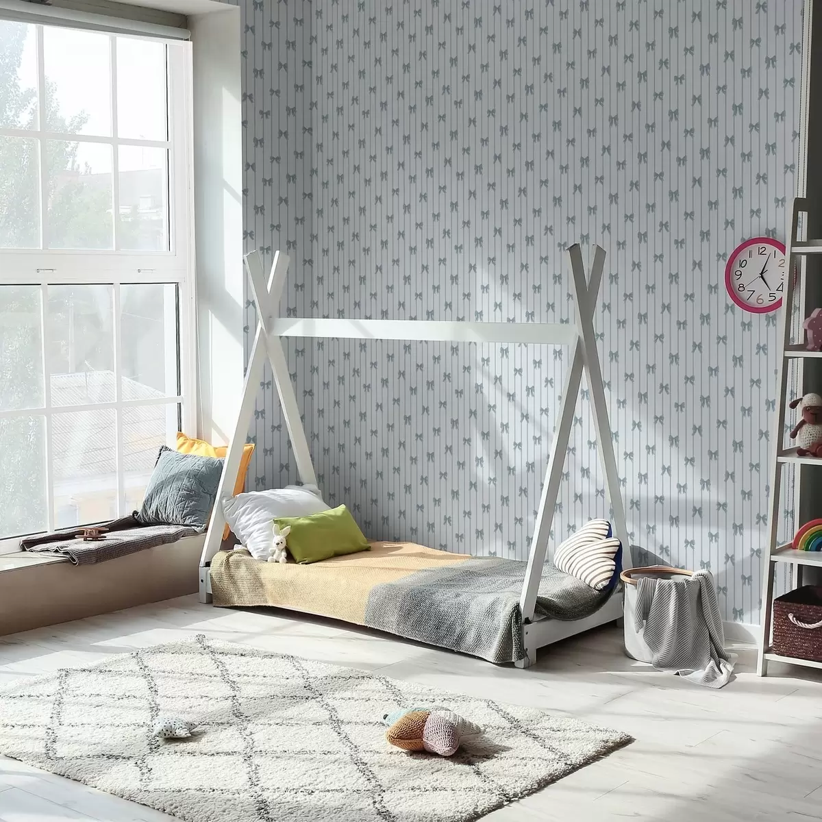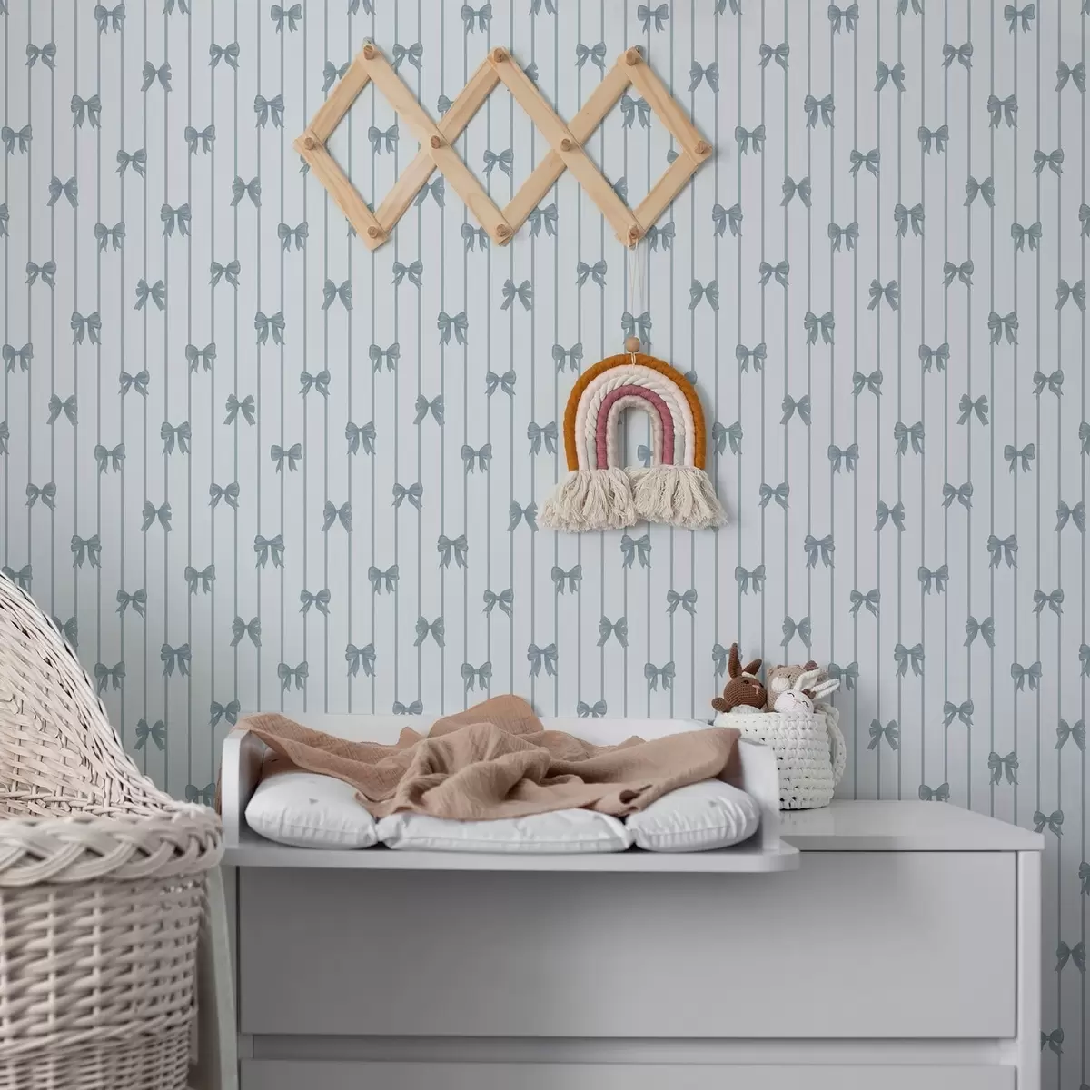 Tapety Delikatny wzór w paski z wstążkami i kokardkami Nr. a01076v3
