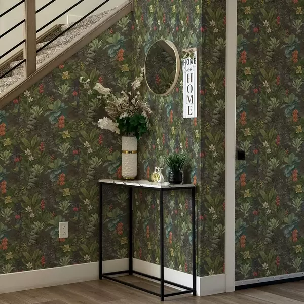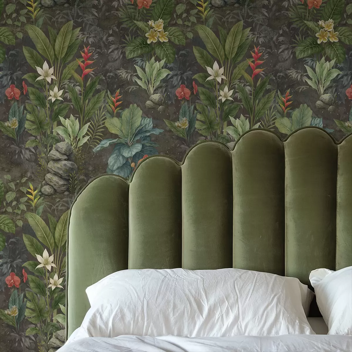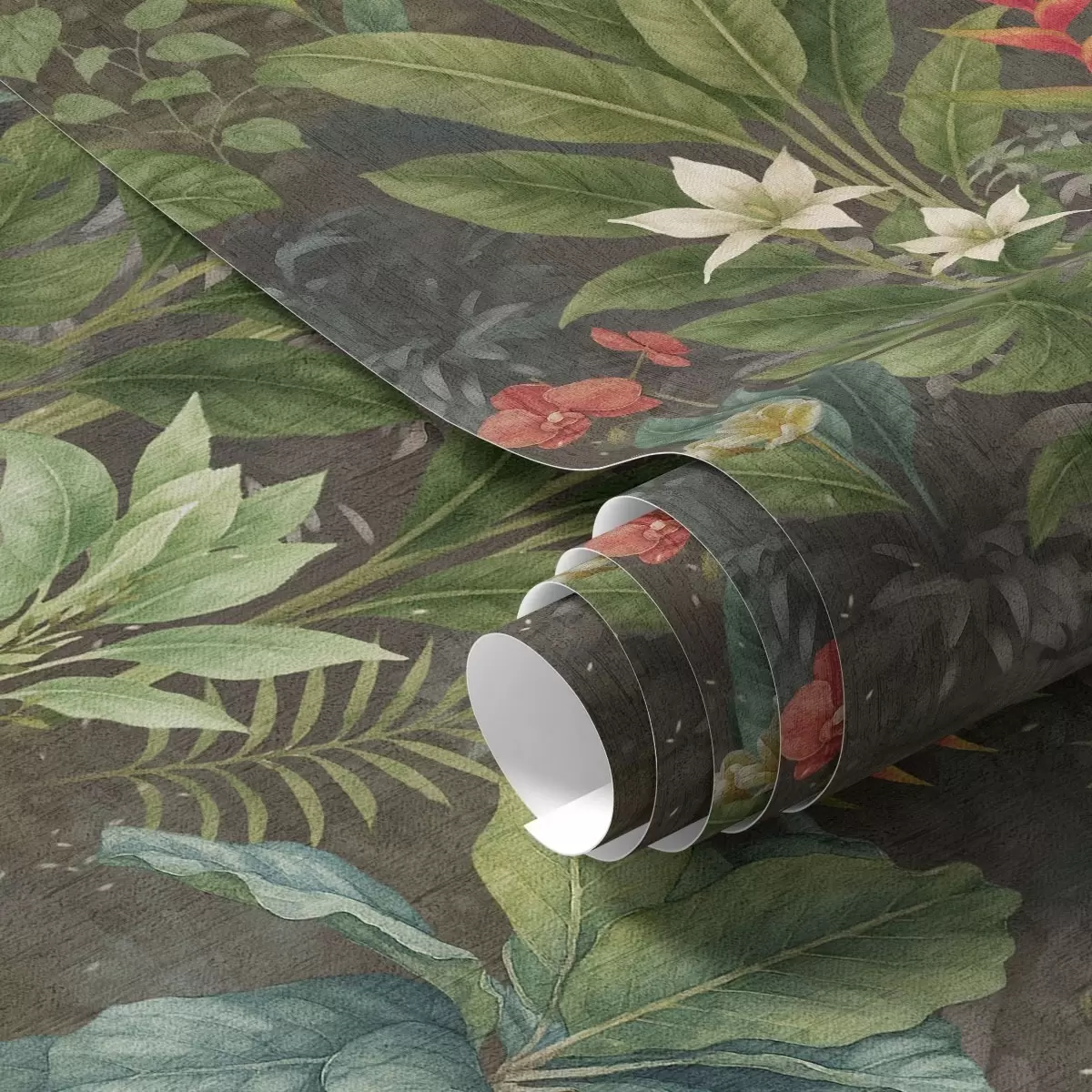 Tapety Ciemny tropikalny ogród z jasnymi kwiatami i liśćmi Nr. a01079