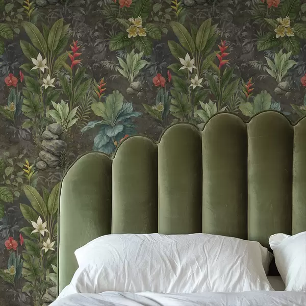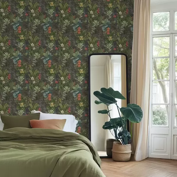 Tapety Ciemny tropikalny ogród z jasnymi kwiatami i liśćmi Nr. a01079
