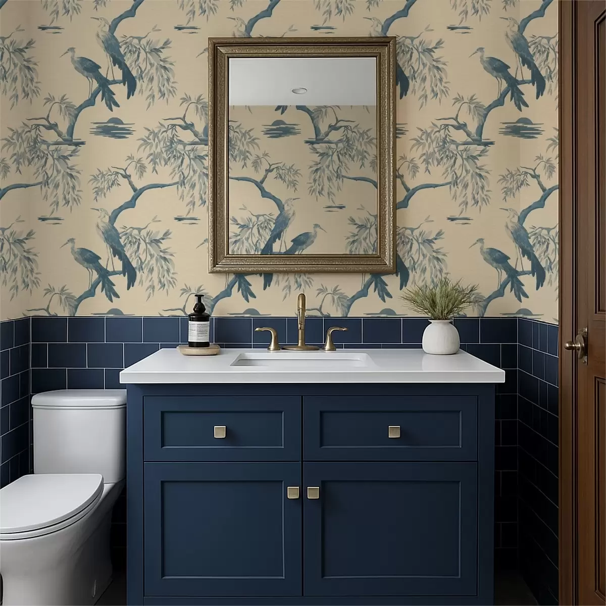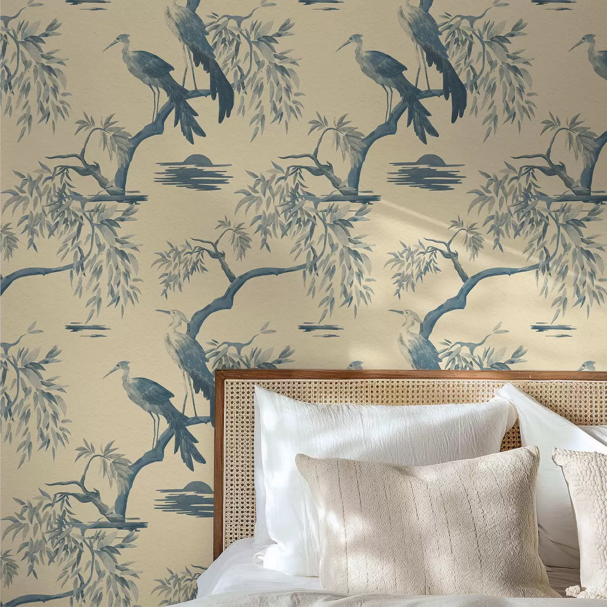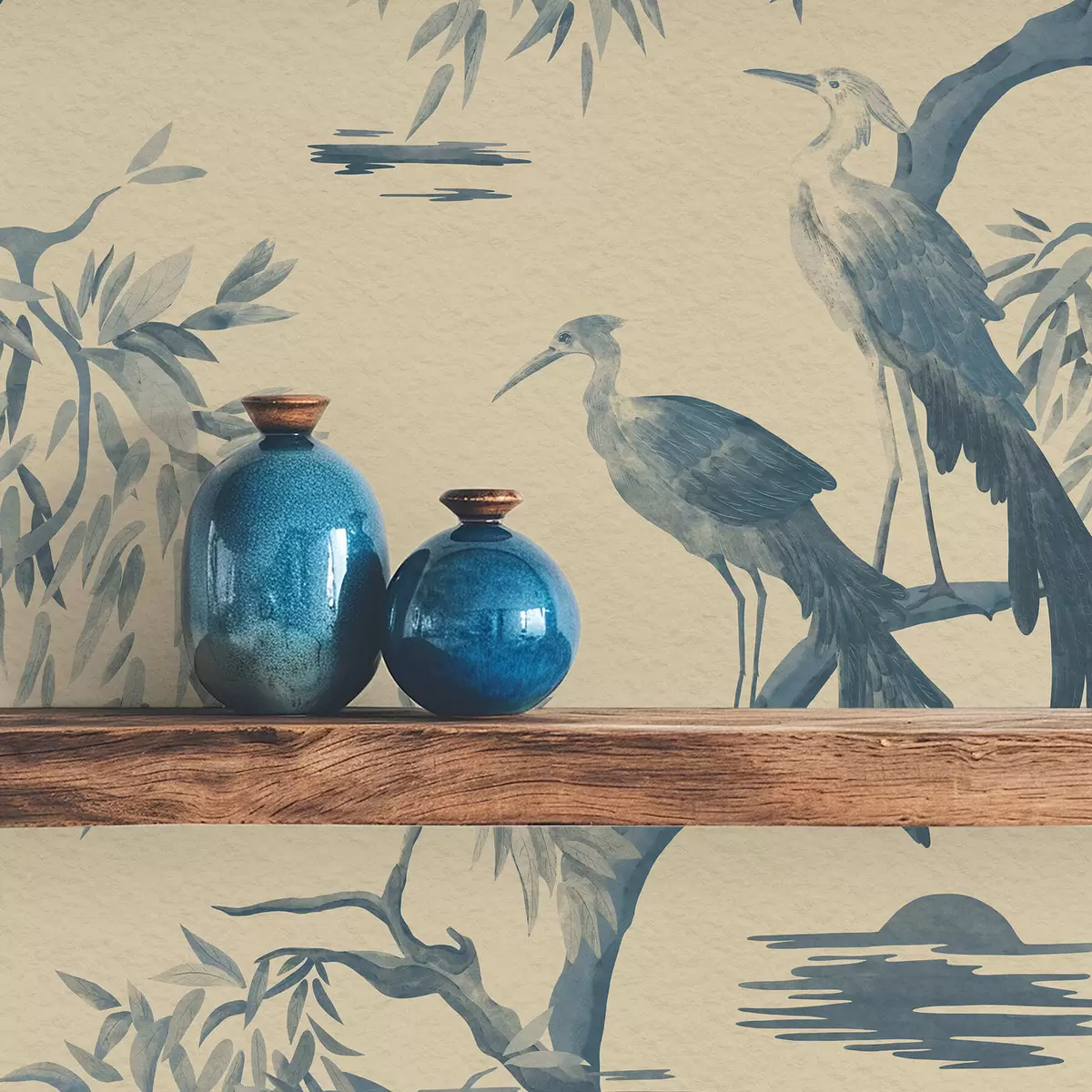 Tapety Ptaki na gałęzi w odcieniach niebieskiego Nr. a01116