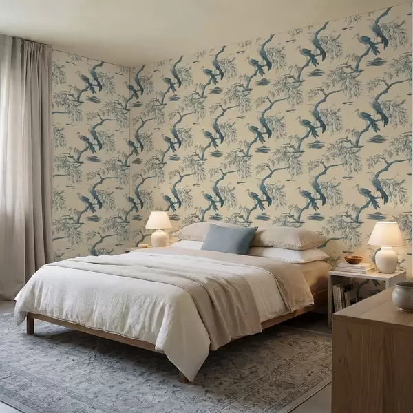 Tapety Ptaki na gałęzi w odcieniach niebieskiego Nr. a01116