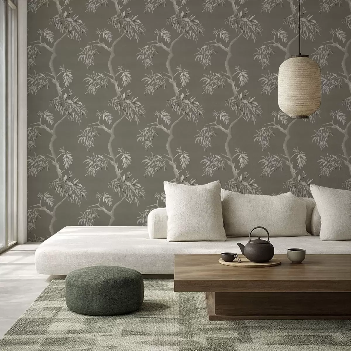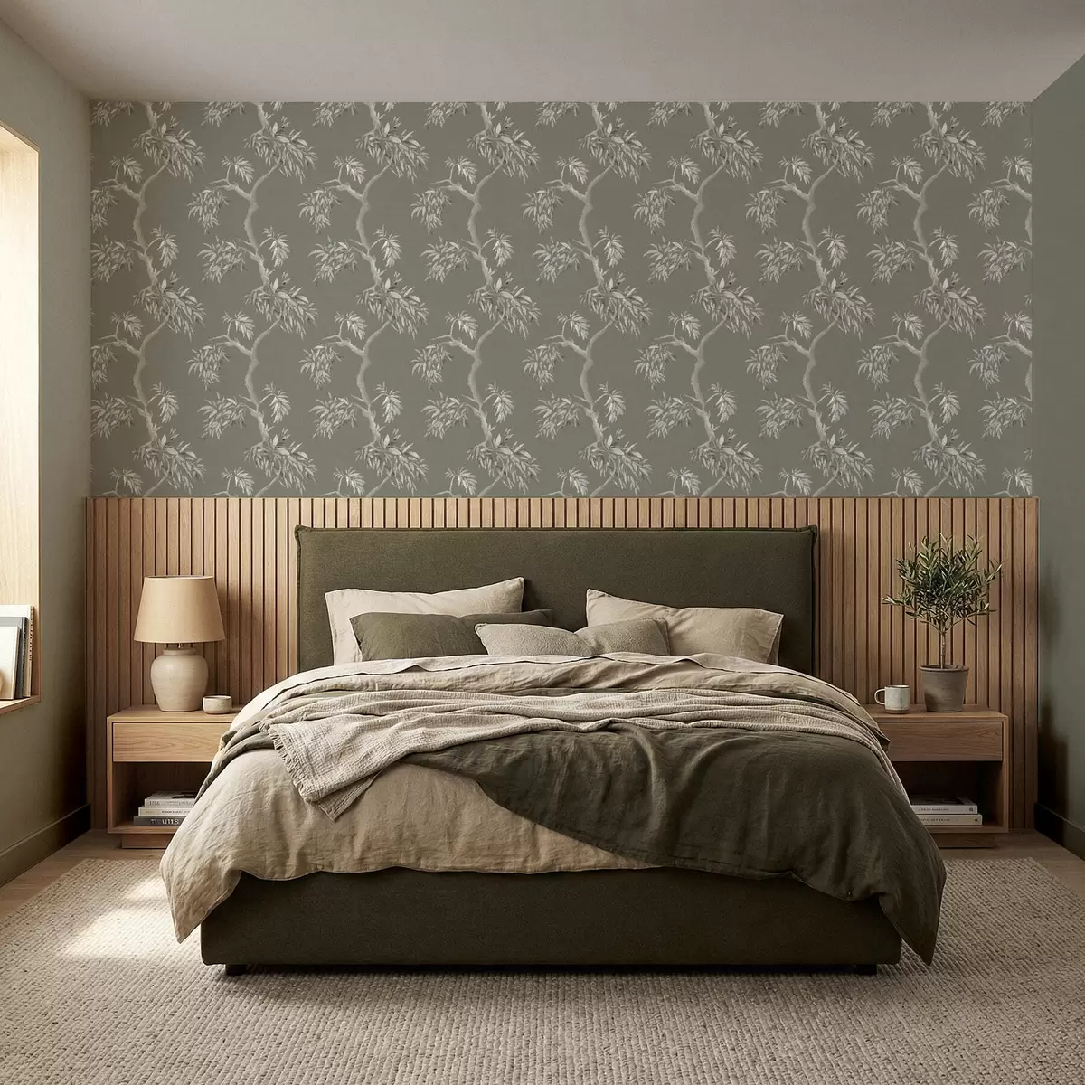 Tapety Jasna gałąź z liśćmi na oliwkowym tle Nr. a01117v1