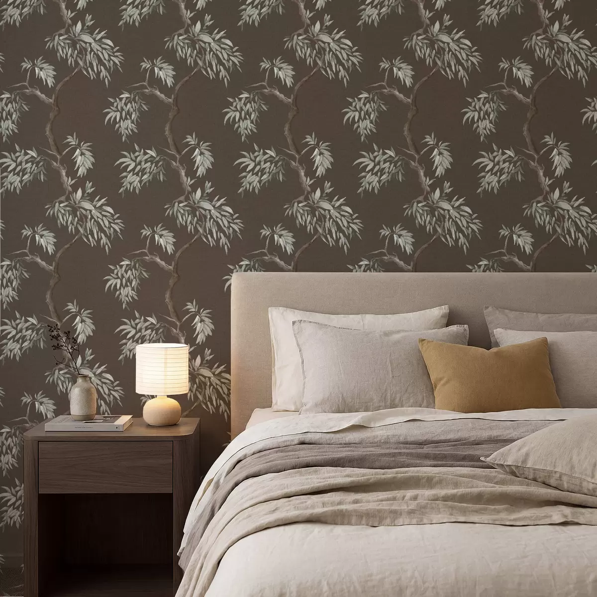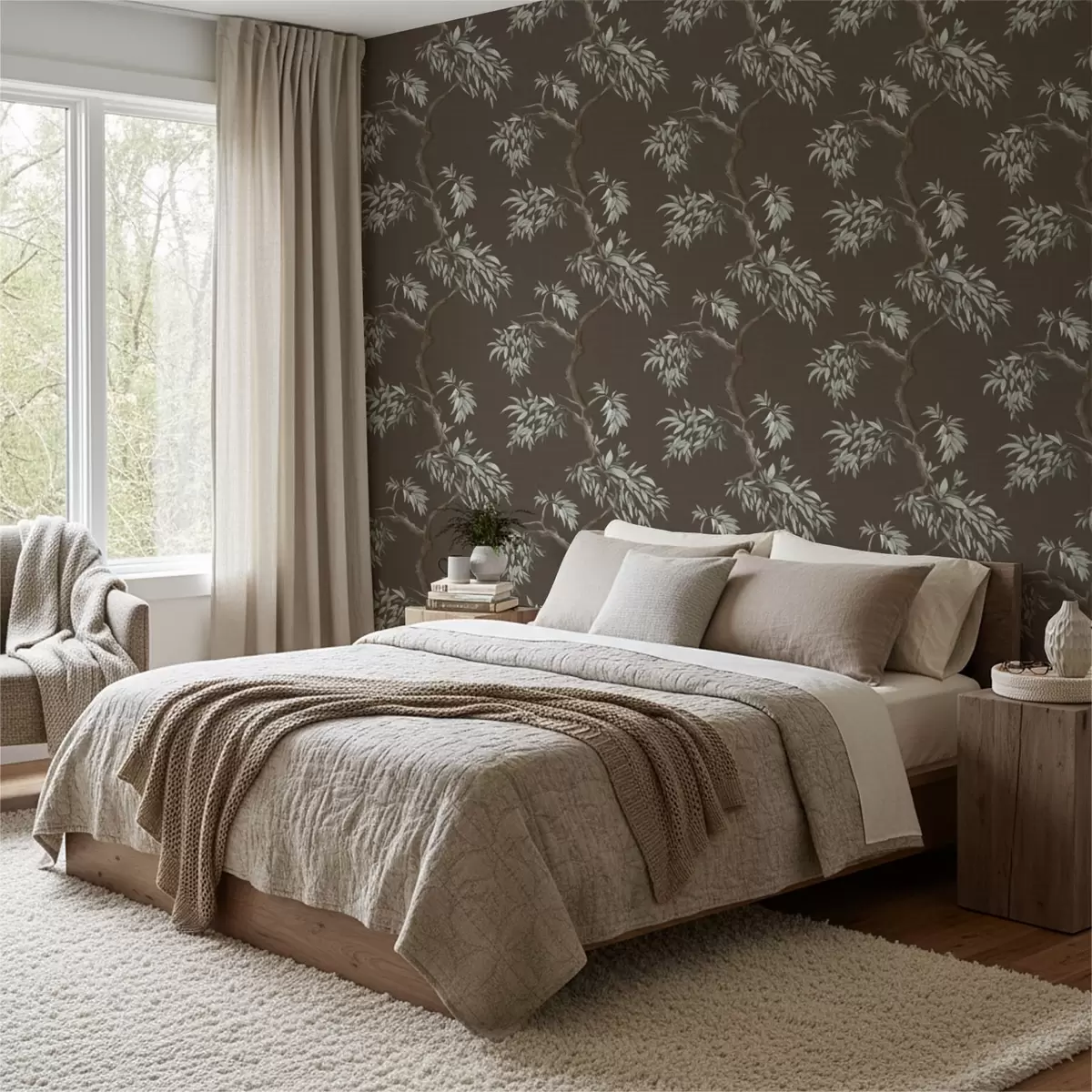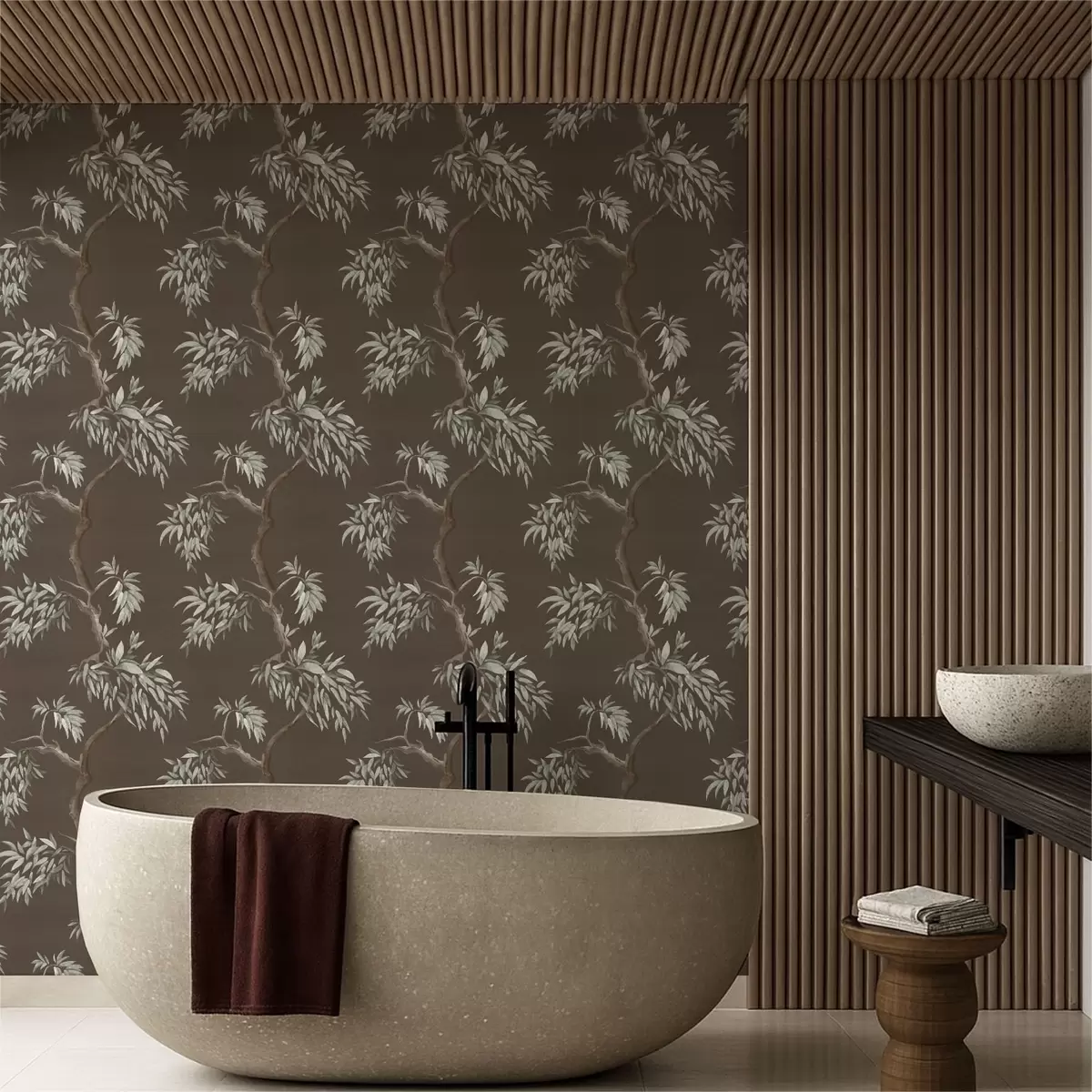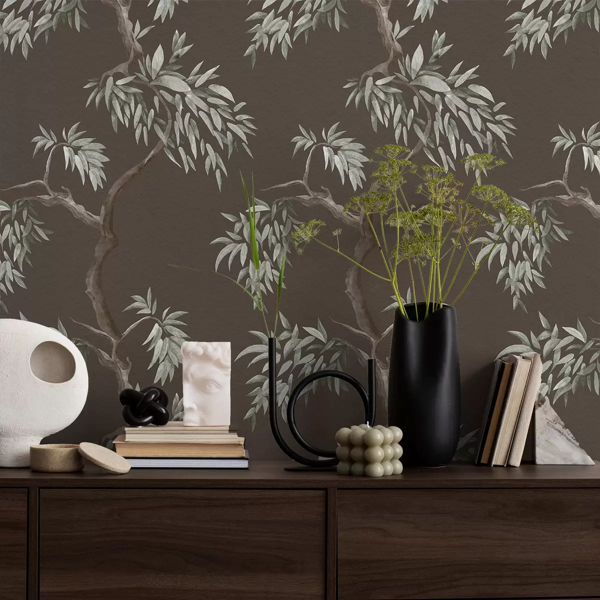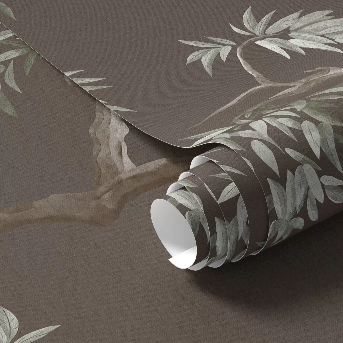 Tapety Gałąź drzewa z liśćmi na brązowym tle Nr. a01117v3