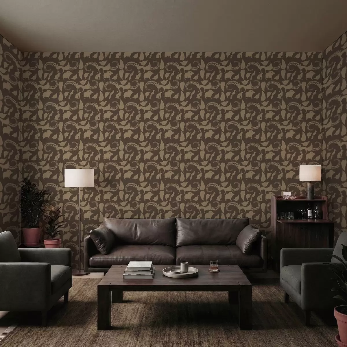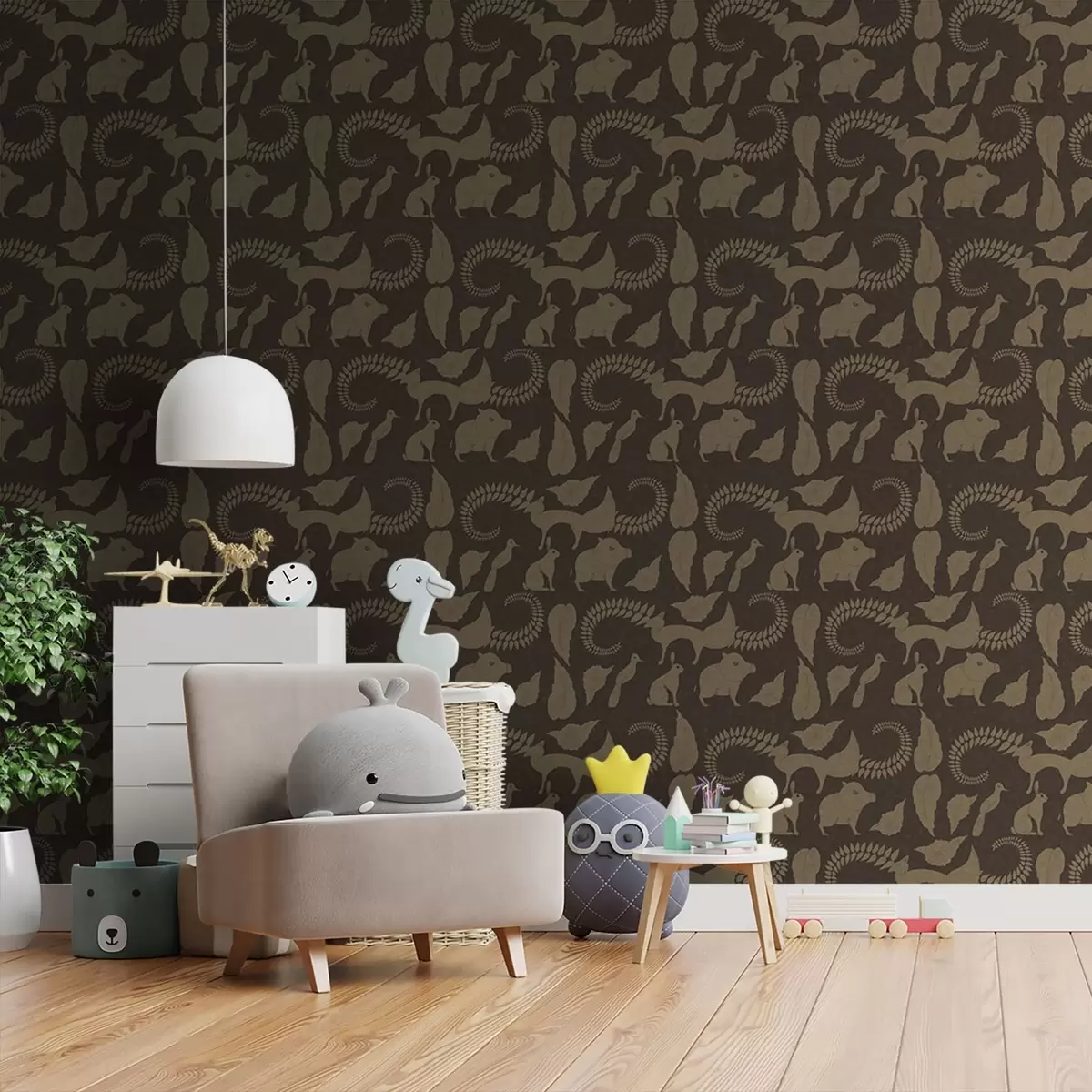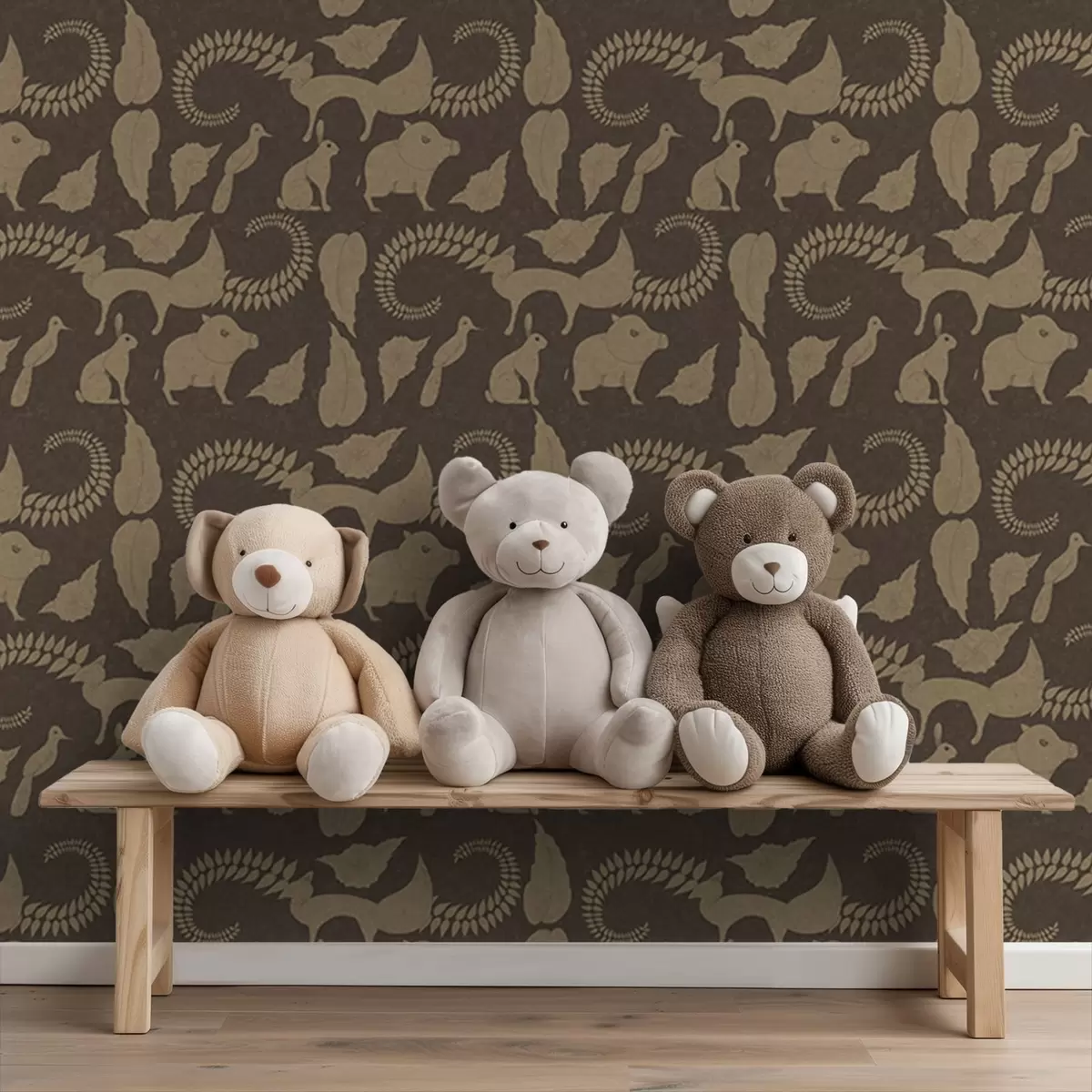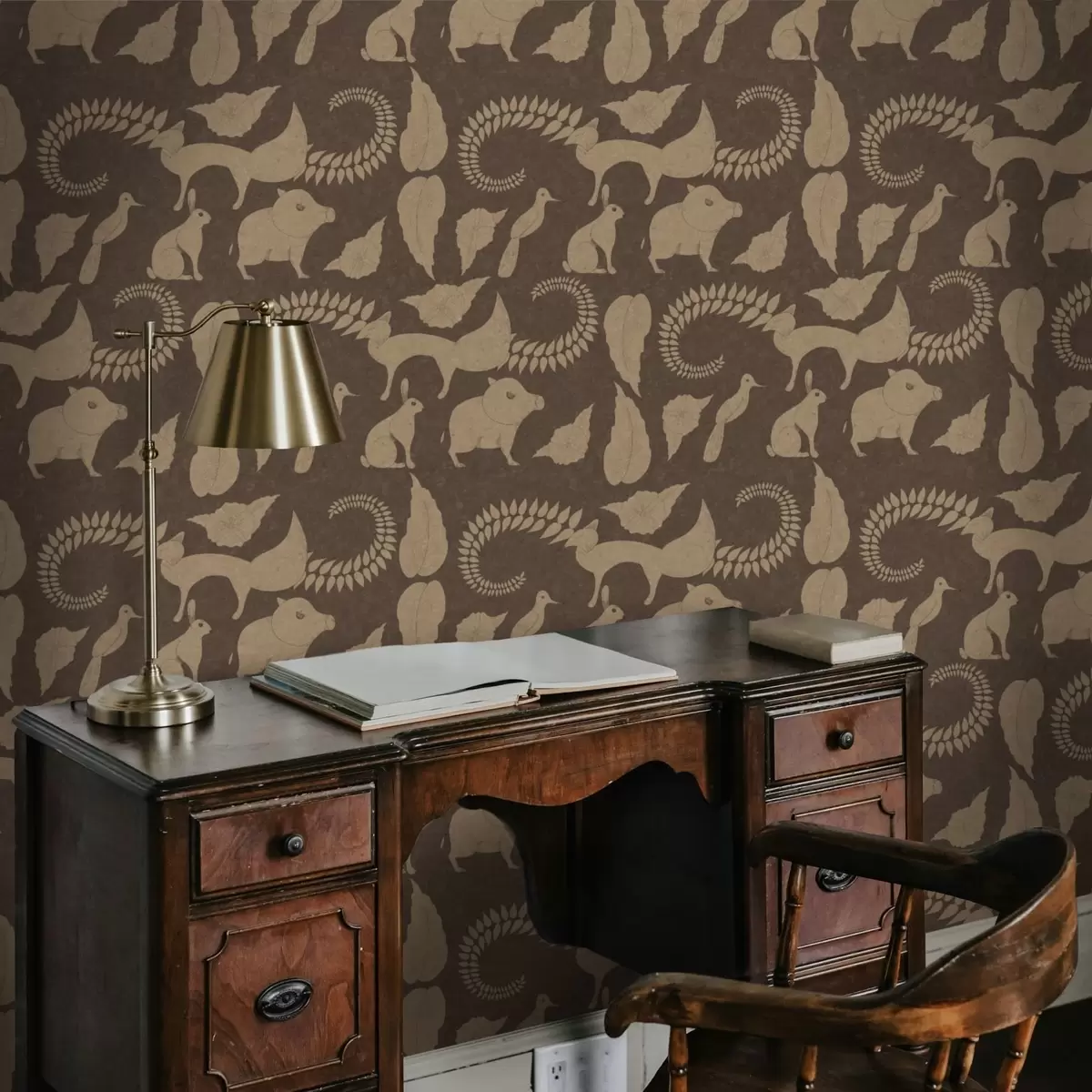Tapety Wzór lasu ze zwierzętami na brązowym tle Nr. a01121