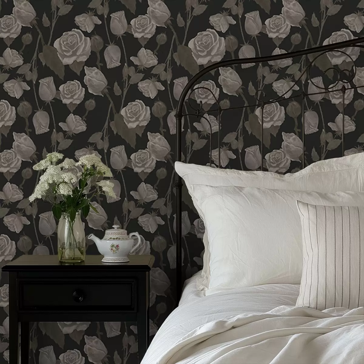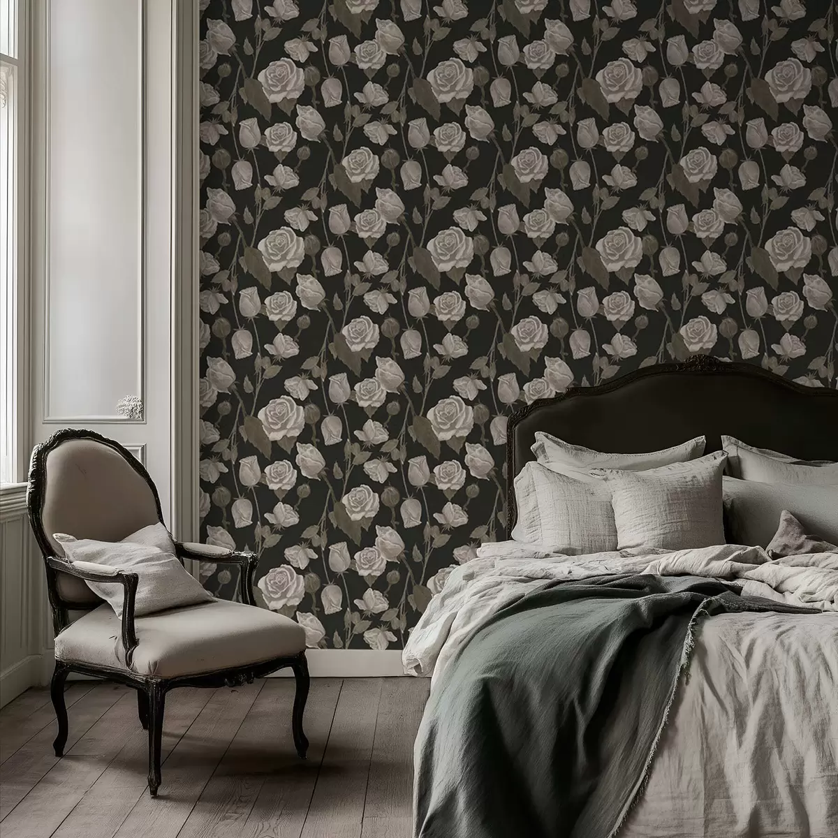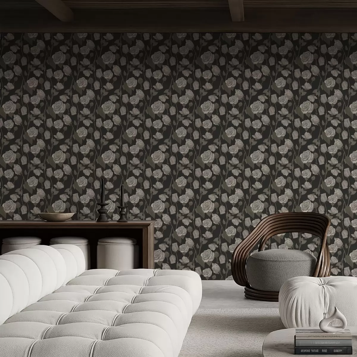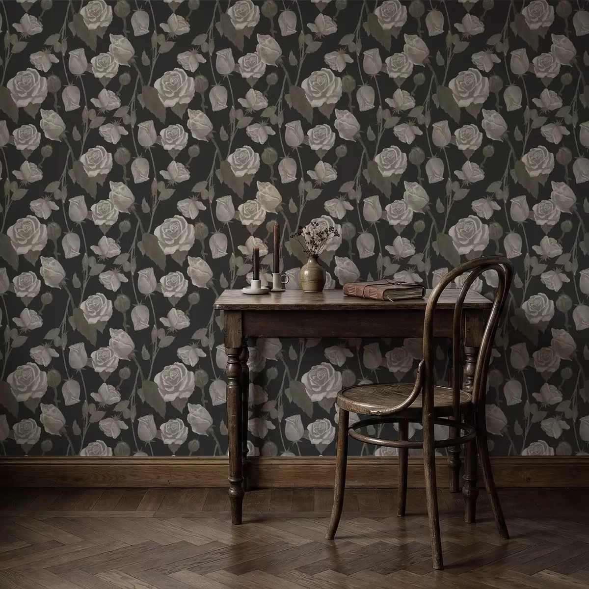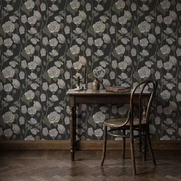 Tapety Kwiatowy wzór z różami na ciemnym tle Nr. a01123