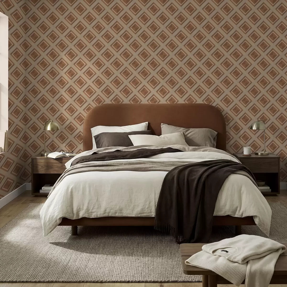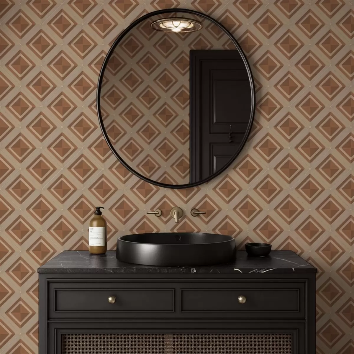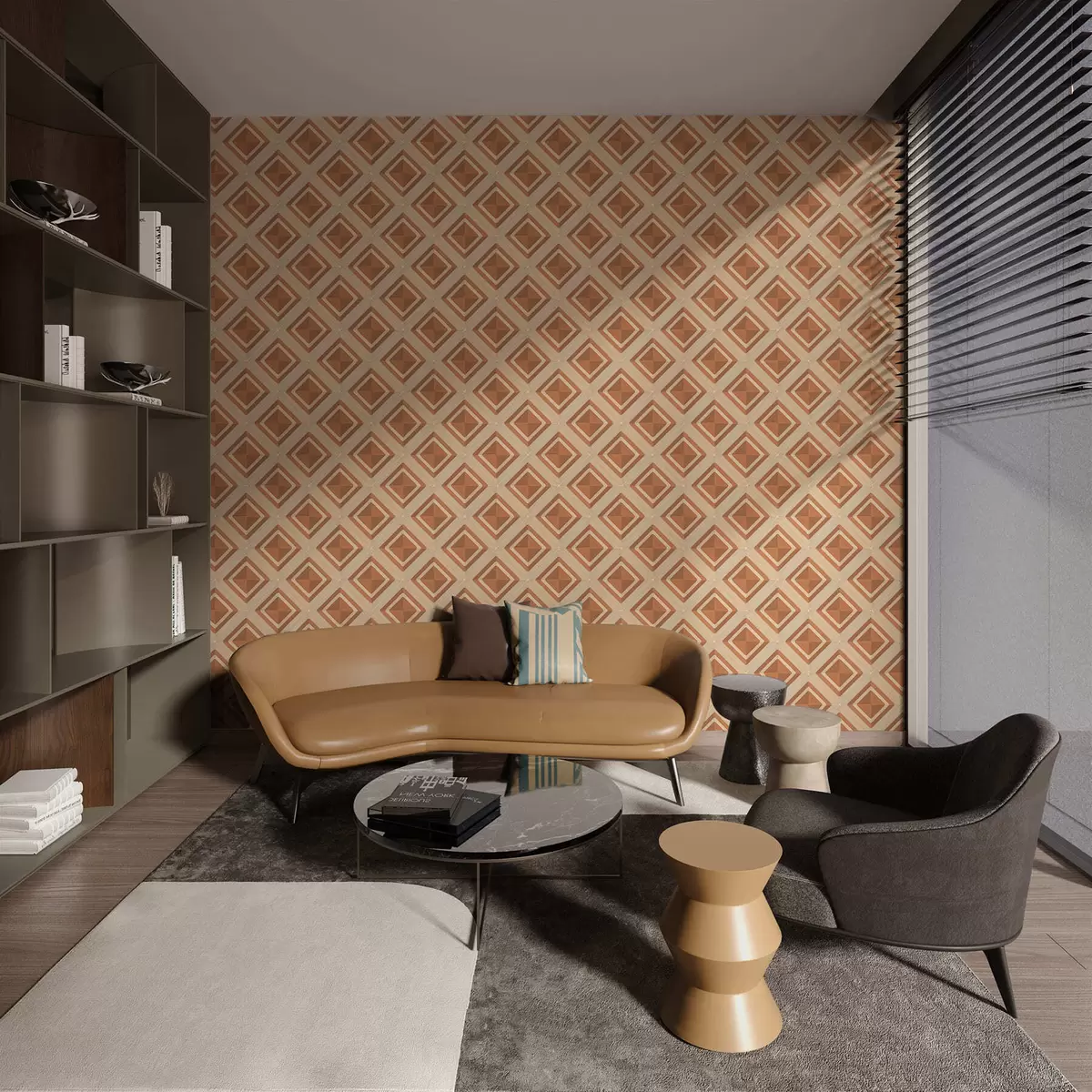 Tapety Geometryczny wzór rombów w odcieniach terakoty Nr. a01128