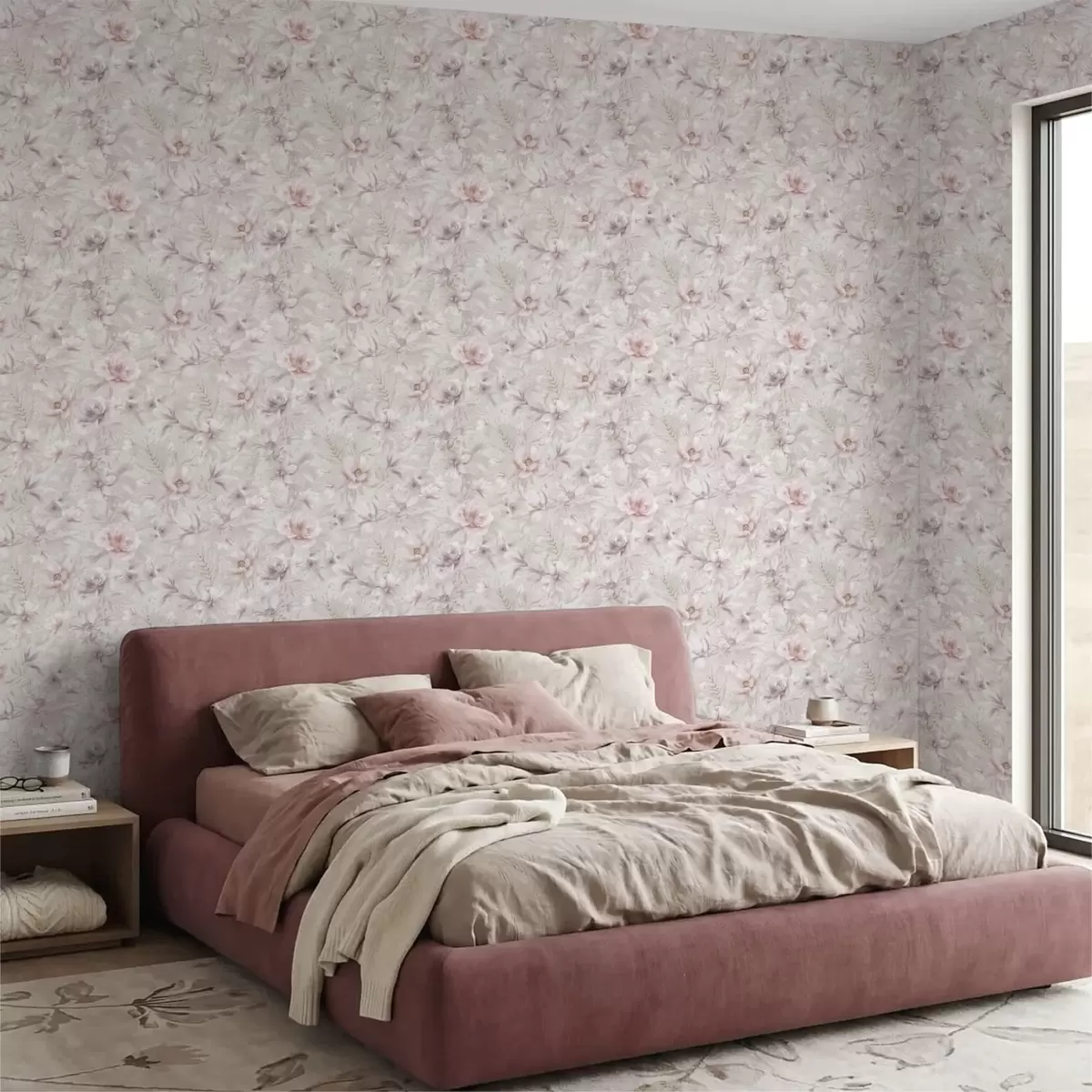 Tapety Wzór z dużymi, delikatnymi kwiatami Nr. a01133