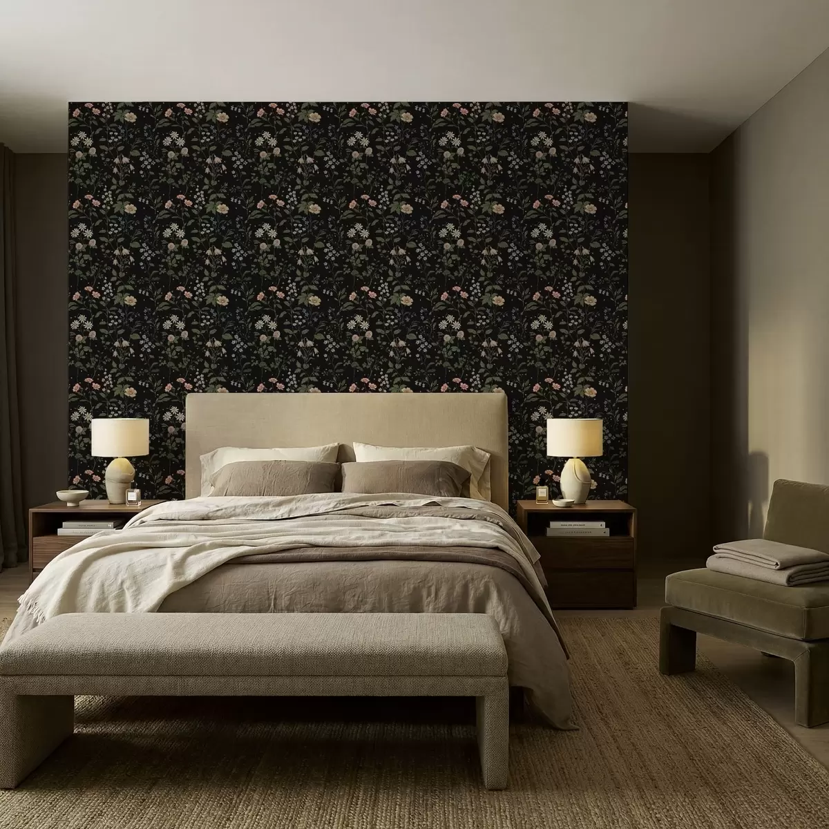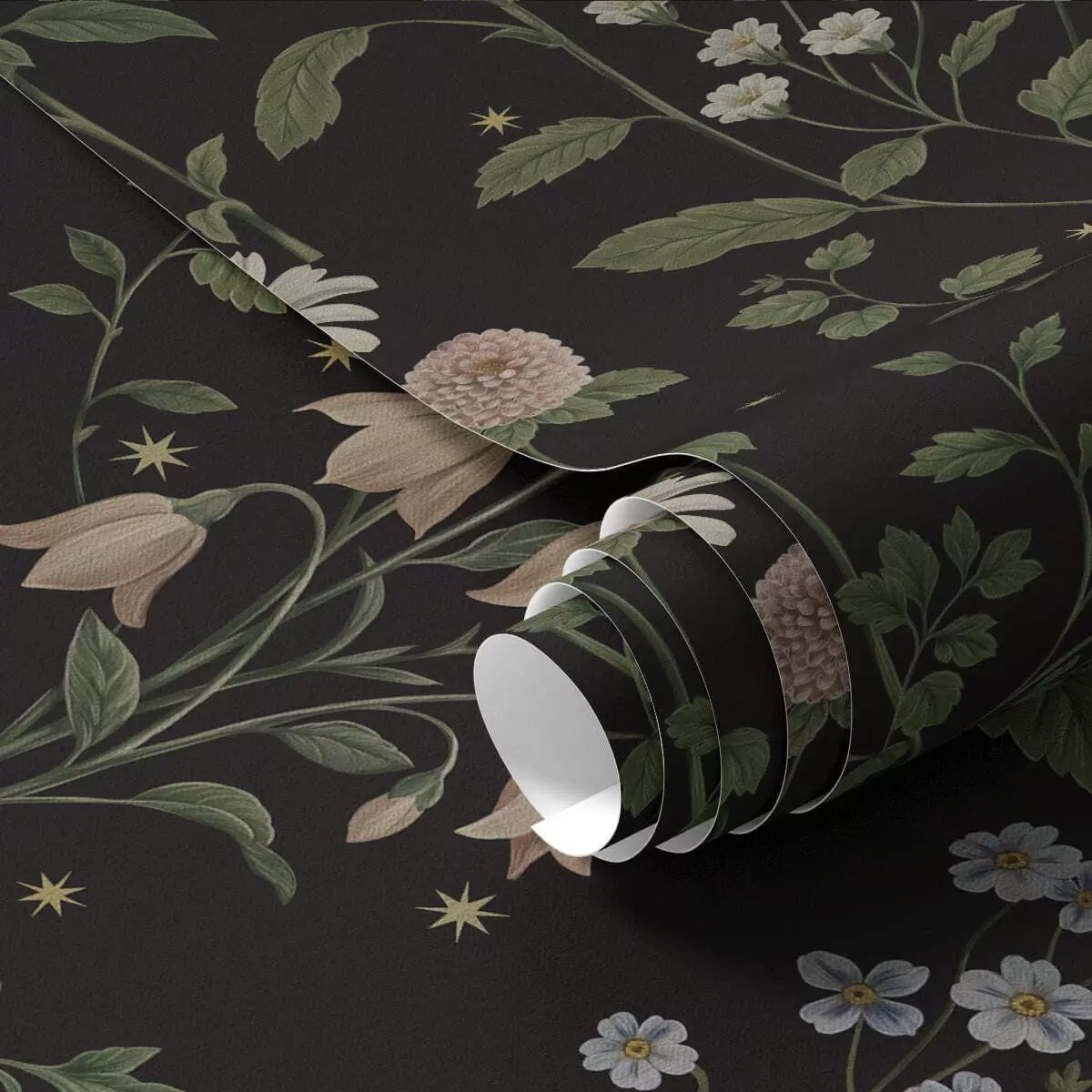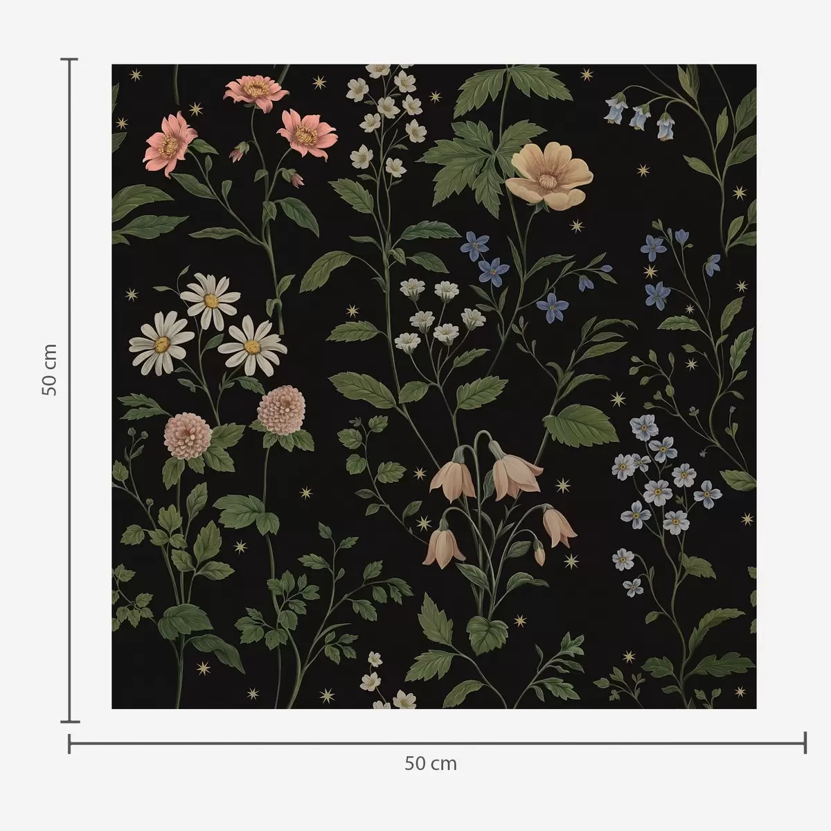 Tapety Kwiatowy wzór na czarnym tle z gwiazdkami Nr. a01160