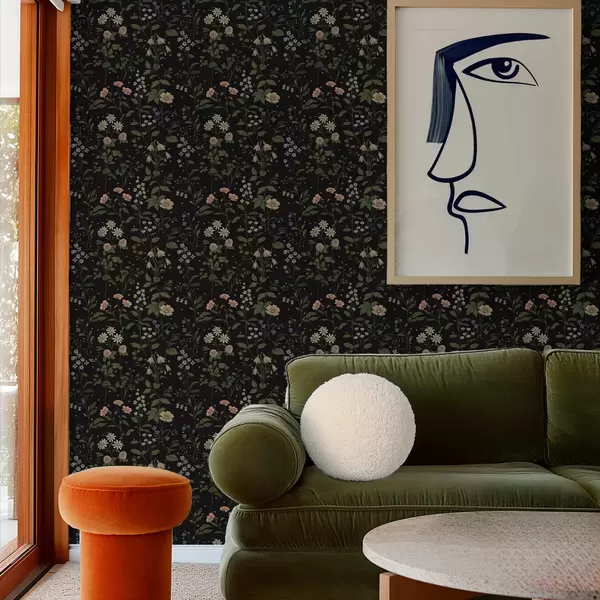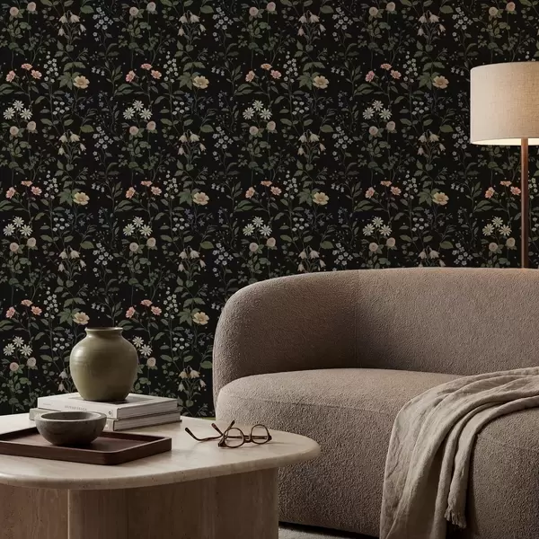 Tapety Kwiatowy wzór na czarnym tle z gwiazdkami Nr. a01160