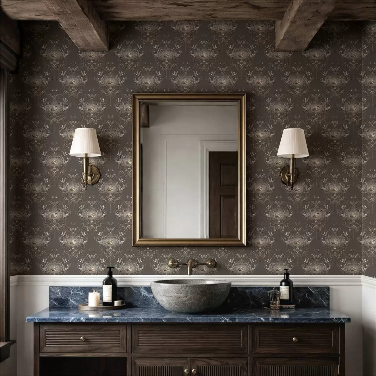 Tapety Ozdoba z łabędziami i ptakami w klasycznym stylu Nr. a01161