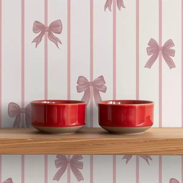 Tapety Różowe kokardki na pionowych paskach na jasnym tle Nr. a01162
