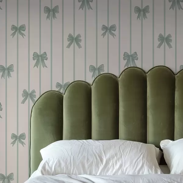 Tapety Zielone kokardki na beżowym tle w paski Nr. a01162v1