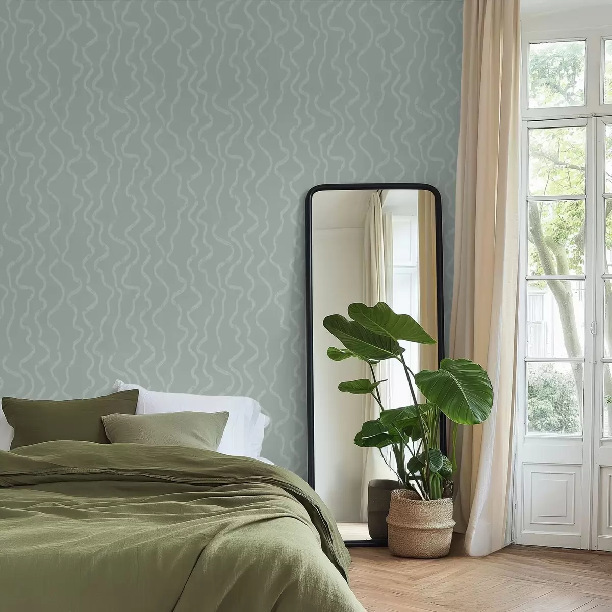 Tapety Falisty wzór świetlny na zielonym tle Nr. a01167v2