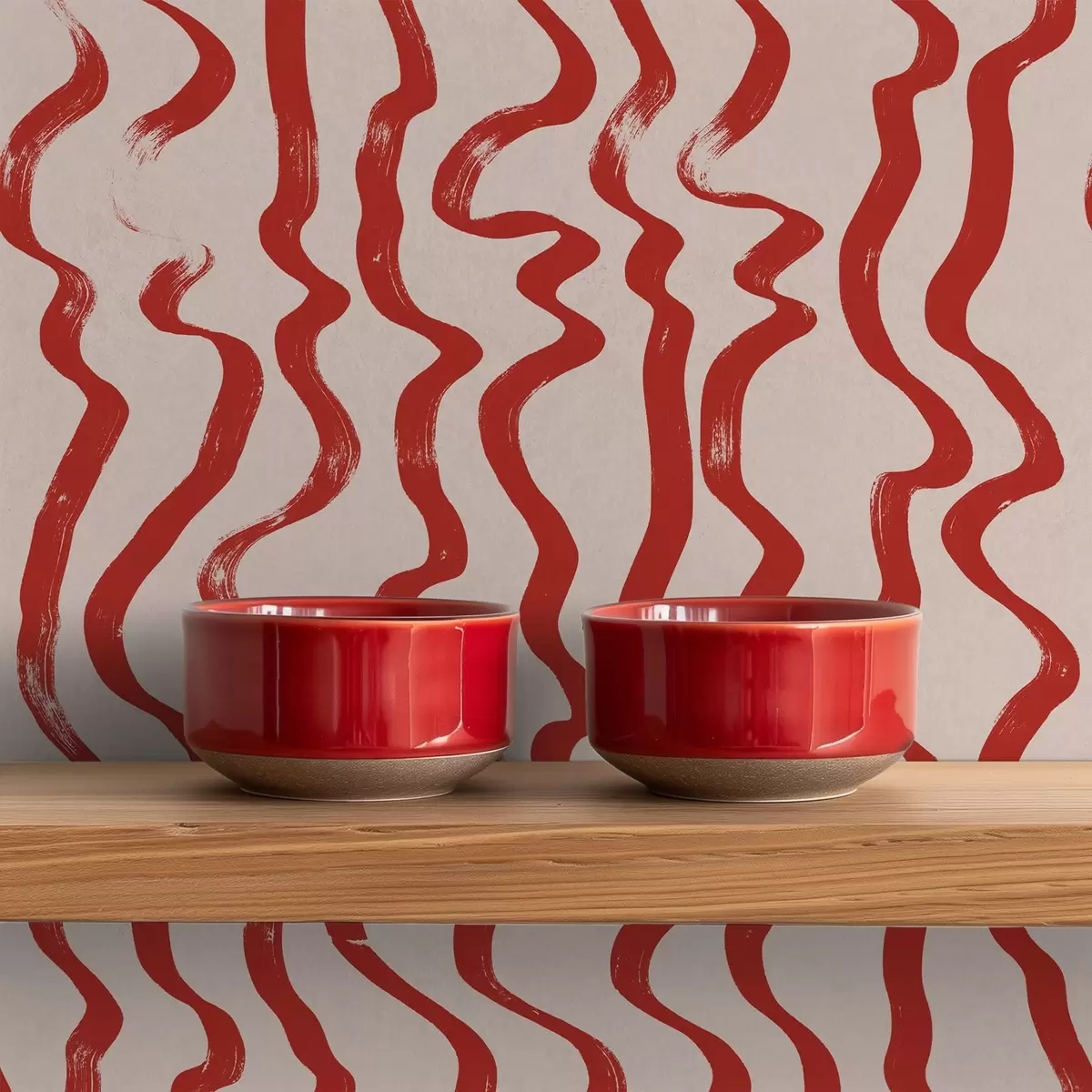 Tapety Czerwone faliste linie na jasnym tle Nr. a01168