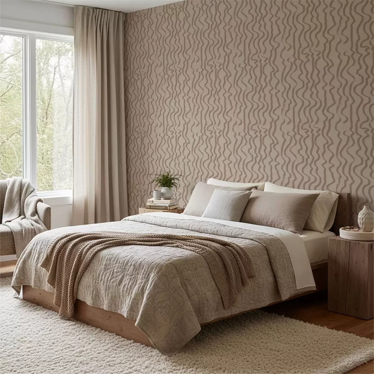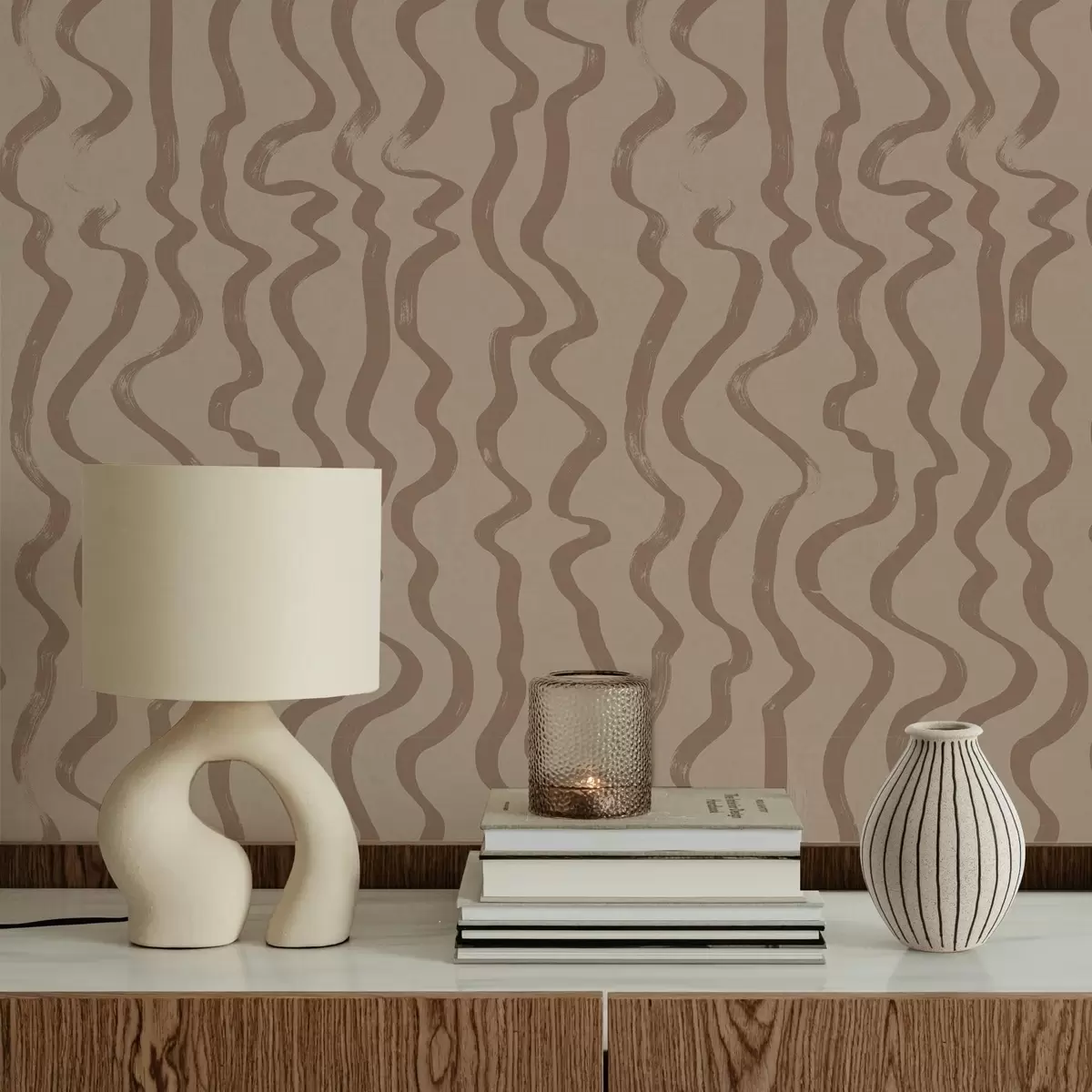 Tapety Beżowe faliste linie na jasnym tle Nr. a01168v2