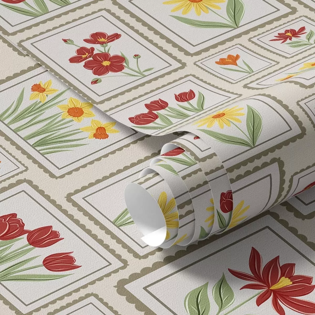Tapety Oprawione w ramki ilustracje kwiatowe w ciepłych barwach Nr. a01173