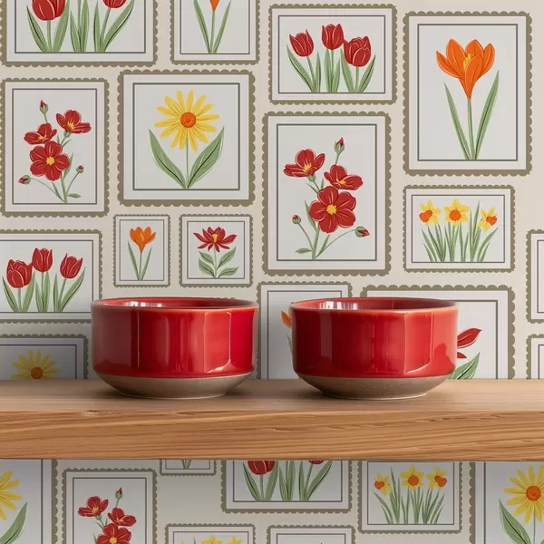 Tapety Oprawione w ramki ilustracje kwiatowe w ciepłych barwach Nr. a01173