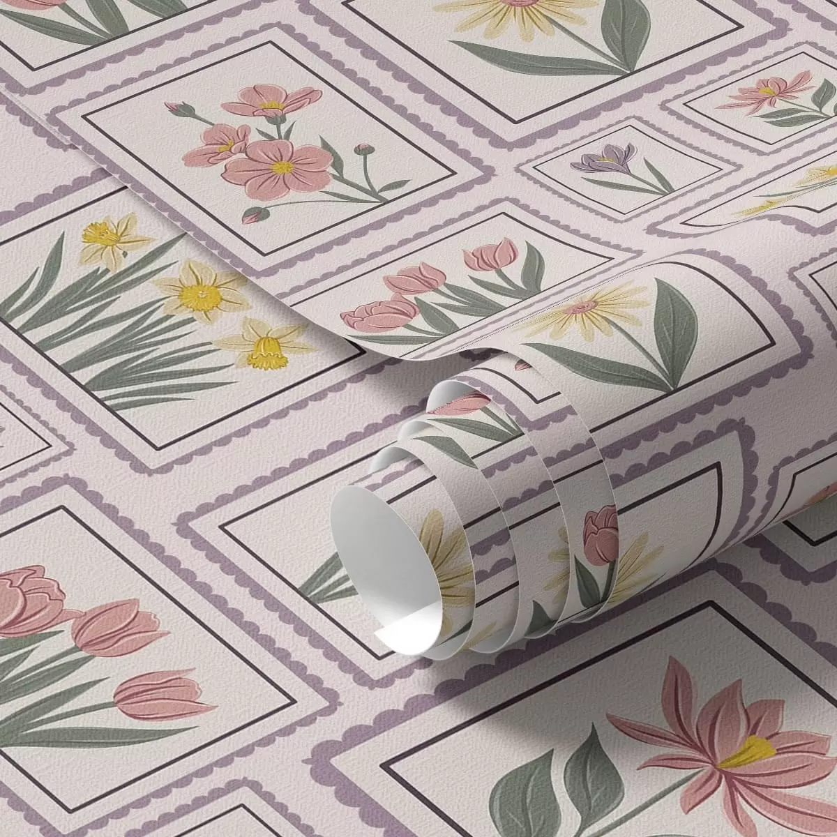 Tapety Oprawione w ramki ilustracje kwiatowe w odcieniach bzu Nr. a01173v2