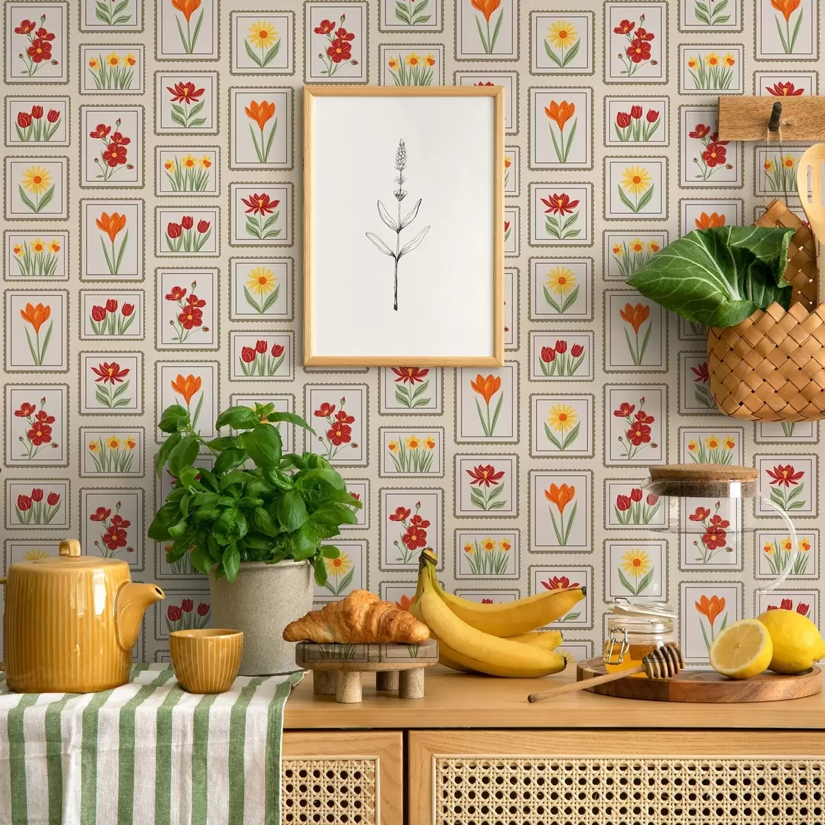 Tapety Jasne, oprawione w ramki ilustracje kwiatowe Nr. a01174v1