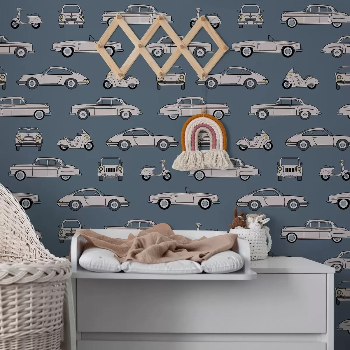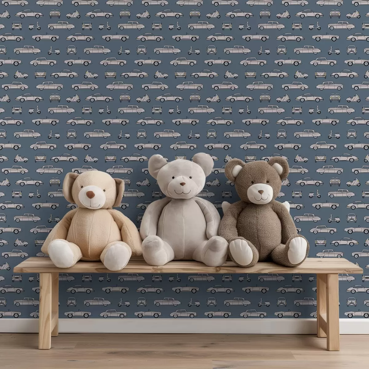 Tapety Samochody i skutery w stylu retro na niebieskim tle Nr. a01178
