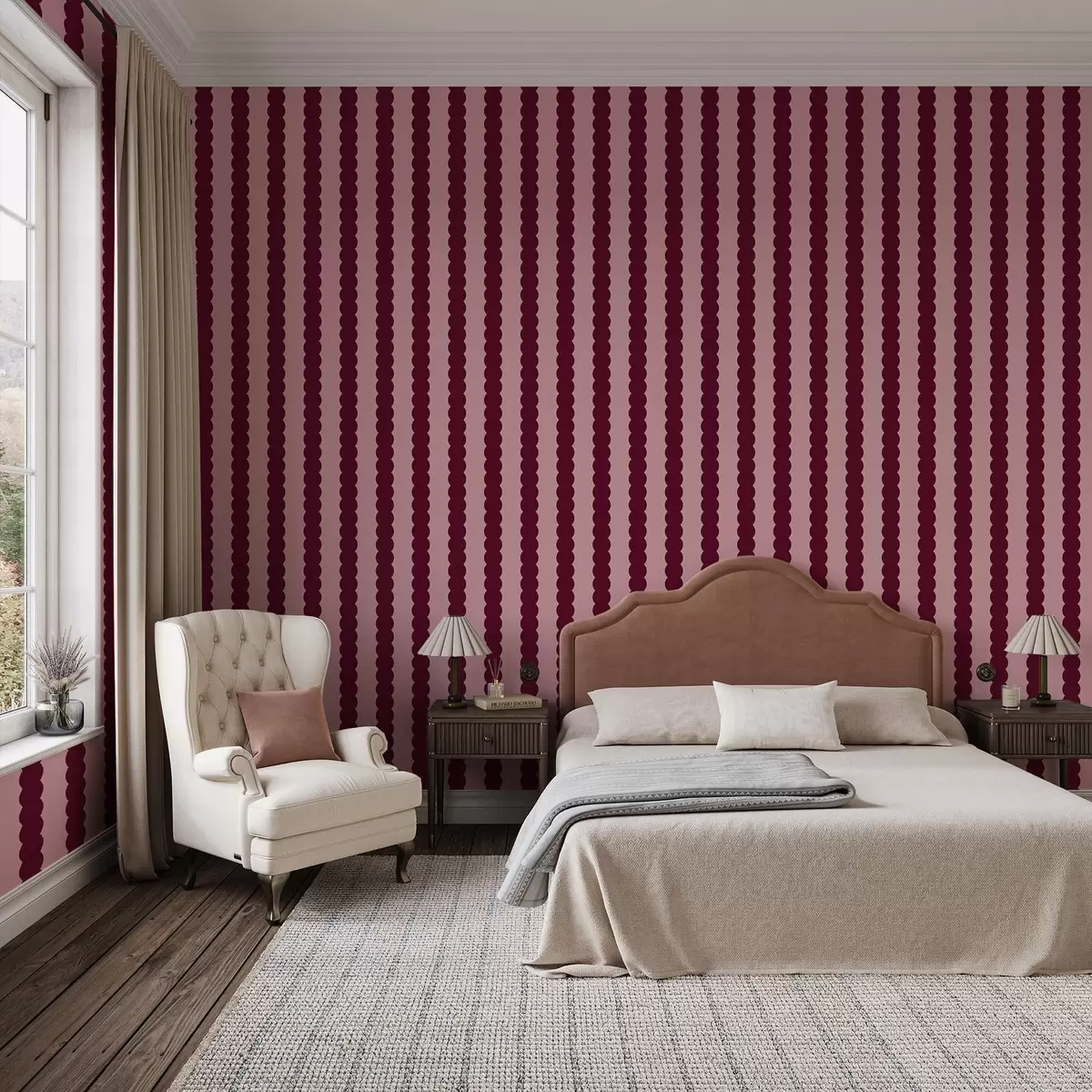 Tapety Burgundowe faliste paski w stylu minimalistycznym Nr. a01182v5